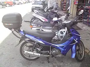 Lagenda ZR 110cc - (2005–2010) A modified version of the Lagenda Z for those who prefer more sporty features. Prominent features include sport rims, electric starter, and the rear absorbers have extra oil canisters for a smoother ride on uneven roads. This model is only available in blue and has exactly the same engine specification as the Lagenda Z.