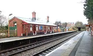 The station was opened by the Great Western Railway (GWR) on 1 July 1908, along with the line, and was originally known as Yardley Wood Platform.... Platform being a GWR term for a station which was intermediate between a halt and a station in importance and facilities;[2][3] the suffix was later dropped. Unlike the previous and following stations on the line (Shirley and Hall Green) Yardley Wood was never provided with goods facilities.[1] Most of the original station buildings are still intact.[2]