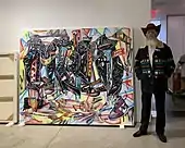 This is an oil on canvas, painted in 2008.[7] Through this piece, Yatika Fields tried to imagine a world where bees were extinct. Thus, he wanted to show the global issue of the decline in bee population.[8] He added elements of nature while using bright and bold colours.
