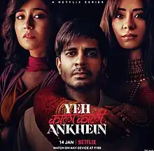 Yeh Kaali kaali Ankhein (transl.These Black Black Eyes) is an Indian Hindi-language romantic crime thriller streaming television series on Netflix created and directed by Sidharth Sengupta. The series stars Tahir Raj Bhasin,[1] Shweta Tripathi and Anchal Singh in the lead roles with Saurabh Shukla, Surya Sharma, Arunoday Singh and Brijendra Kala playing supporting roles.[2][3][4] The title of the series is derived from a song from the 1993 film Baazigar.[5]