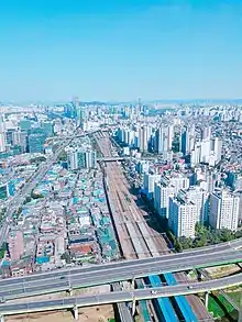 Historically, Yeongdeungpo district has been dominated by the manufacturing industry and remnants of this are clearly visible around the district with small workshops and larger factories located next to modern developments, especially in Mullae-dong.[9]