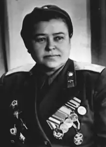 Yevdokiya Yakovlevna Rachkevich (Russian: Евдокия Яковлевна Рачкевич; née Andriychuk; 22 December 1907 – 7 January 1975) was the deputy regimental commander and commissar of the 46th Guards Night Bomber Aviation Regiment (a.k.a., the "Night Witches") during the Second World War. After the end of the war, Rachkevich traced the regiment's path throughout the war and managed to locate the remains of women in the regiment that were listed as missing in action so that they could receive a proper burial. Soldiers that went missing in action were considered potential traitors until their remains were found because they could have been captured, and Soviet prisoners of war were considered "guilty until proven innocent" of collaboration with the Axis, especially after Order No. 270 forbid surrender or retreat.