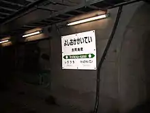 Yoshioka-Kaitei Station (吉岡海底駅, Yoshioka-Kaitei-eki) was a railway station on the Kaikyo Line in Fukushima, Hokkaido, Japan, operated by Hokkaido Railway Company (JR Hokkaido). The station was underground and was located within the Seikan Tunnel under the Tsugaru Strait linking the main Japanese island of Honshu with the northern island of Hokkaido. The station was located 149.5 metres (490 ft) below sea level,[1] making it the deepest underground station in the world.