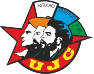 The Young Communist League (Spanish: Unión de Jóvenes Comunistas, UJC) is the youth organization of the Communist Party of Cuba. Its membership is voluntary and selective. The organizations counts more than 400,000 active members.[1] Its symbol shows the stylized faces of Julio Antonio Mella, Camilo Cienfuegos and Che Guevara. The motto is Estudio, Trabajo, Fusil and means "Study, Work, Rifle".