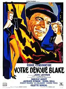 Yours Truly, Blake (French: Votre dévoué Blake) is a 1954 French comedy crime film directed by Jean Laviron and Jerome Epstein and starring Eddie Constantine, Danielle Godet and Simone Paris.[1] The film's sets were designed by Robert Clavel.