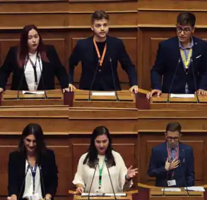 - ↑ "Βουλή των Εφήβων: Ολοκληρώθηκαν οι εργασίες της ΚΔ΄ Συνόδου". September 6, 2019.