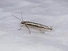 - ↑ "360054.00 – 2381 – Ypsolopha flavistrigella – (Busck, 1906)". North American Moth Photographers Group. Mississippi State University. Retrieved November 17, 2020.