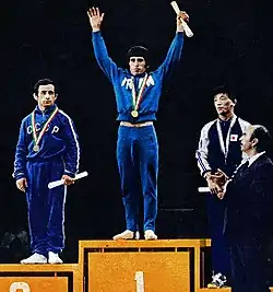 Yuji Takada (高田 裕司, Takada Yūji, born February 17, 1954) is a retired Japanese flyweight freestyle wrestler. He competed at the 1976 and 1984 Olympics and won a gold and a bronze medal, respectively. Takada held the world title in 1974, 1975, 1977 and 1979.[1][2] In 2005 he was inducted into the FILA Hall of Fame.[3]