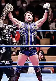 Yuma Aoyagi (青柳 優馬, Aoyagi Yūma, born November 2, 1995) is a Japanese professional wrestler currently working for All Japan Pro Wrestling. A member of the Zennichi Shin Jidai stable, he is a former Triple Crown Heavyweight Champion, a two-time All Asia Tag Team Champion, and a three-time AJPW World Tag Team Champion. He is also the older brother of professional wrestler and fellow AJPW signee Atsuki Aoyagi.