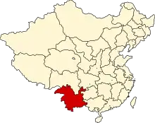 Yunnan Province (red) in the de jure territory of the Republic of China