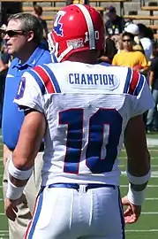 Champion started as a quarterback for the Louisiana Tech University football team until his graduation following the 2007 season.[1] His senior year, Champion's Bulldogs went 5–7. Champion passed for 2221 yards and 13 touchdowns and throwing only two interceptions.
