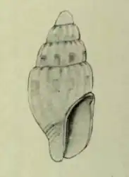 (Original description) The shell is broadly fusiform and truncate in front. The apex is obtuse. The shell contains five flatly rounded whorls. The suture is impressed. The oblong aperture is slightly produced in front. The outer edge is nearly straight. The inner edge is angled above. The shallow outer lip is thin with a sinus at the suture. The inner lip is thickened and straight below. The short siphonal canal is wide.