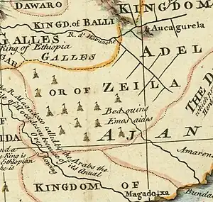 The fifteenth century empress Eleni of Ethiopia was styled as "queen of Zeila" due to her Muslim upbringing and connection to the Hadiya Sultanate.[18] The leaders of Adal were also often referred to as Zeila kings in texts most notably Ahmad ibn Ibrahim al-Ghazi conqueror of Abyssinia.[19][20]