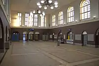 The Zeitz–Camburg railway, which opened in 1897, ended in a separate Camburger Bahnhof (station to/from Camburg) until 1914 due to the heavy traffic on the tracks in Zeitz station. This station, also called the Thüringischer Bahnhof (Thuringian station), was located next to the present entrance building. After the completion of the current station building in 1912, the old station was demolished.[8] In April 1914, the rail infrastructure in Zeitz was completely rebuilt. A common station was established.