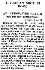 - 1 2 "Abyssinian shot in Rome: An interrupted prayer". The Times. 1938-06-16. p. 16. Archived from the original on 2017-08-11. Retrieved 2017-08-13.
