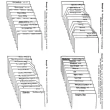 American historian Frederic L. Paxson (1877–1948) filed notes on 3×5-inch paper slips daily throughout his career, and by the time of his death all the slips filled about 80 wooden file drawers.[38] The notes were ordered chronologically and topically, with cross-references on each card to related subject headings, linking each subject through various stages in time.[38]