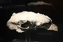 Zhongyuansaurus, like other ankylosaurids, had numerous osteoderms that would have been embedded in the dermis of the skin.[1] Xu et al., 2007 recognised eight different sets of osteoderms pertaining to the holotype specimen.[1] These osteoderms include: A large, thin irregular quadrangle osteoderms that may have been located on the front portion of the back; large, thick, irregular quadrangle osteoderms that had a flat surface, and front edges that extend considerably downwards; circular osteoderms that have an off centred keel on the outer surface; asymmetrical circular osteoderms that have a well developed keel on the outer surface; small circular osteoderms that have irregular grooves and no ridges on the outer surface; hollow cone osteoderms that have an irregular grooved sculpture on the outer surface; kidney shaped osteoderms that have the sides folded upwards and one edge being thicker than the other; ridge shaped osteoderms that have an irregular grooved sculpture on the outer surface.[1]