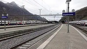 Ziegelbrücke is also a terminus for two regional lines, the Ziegelbrücke–Linthal railway and the Rapperswil–Ziegelbrücke railway.[1]
