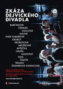 Zkáza Dejvického divadla (English: The End of Dejvice Theatre) is a six-part Czech television comedy series about the Dejvice Theatre, whose actors and other employees play themselves. The script was written by Miroslav Krobot and Ondřej Hübl, the director is Miroslav Krobot. The pre-premiere of all six parts took place on February 27, 2019, in 50 Czech cinemas. The series premiered on Czech Television from March 4 to April 8, 2019.