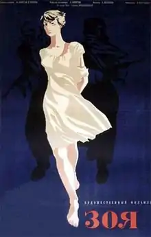 Zoya (Russian: Зоя) is a 1944 Soviet biographical war film directed by Lev Arnshtam.[2] Margarita Aliger’s poem with the same name which had been published in September 1942 was the inspiration of the film.[1] It was entered into the 1946 Cannes Film Festival.[3]
