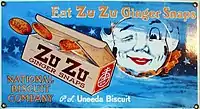 Zu Zu Ginger Snaps was a brand of round drop cookies originally manufactured in 1901 by the National Biscuit Company (NBC) –later changed to Nabisco– and produced until the early 1980s. The snaps are "a spicy combination of ginger and sugar-cane molasses"[1] and came in a distinctive yellow box with reddish type.