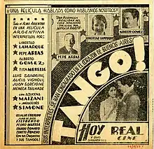 ¡Tango! est un film argentin réalisé par Luis Moglia Barth et sorti en 1933. Il est considéré comme le premier long métrage parlant argentin[1], utilisant le procédé du son optique. De nombreuses vedettes de la scène et de la radio font leur apparition dans le film, qui n'a pas eu un grand succès[2] mais qui a établi une formule qui a été utilisée ultérieurement par de nombreux films sur le tango.
