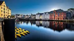 Ålesund est un important port de pêche sur la mer de Norvège, à 230 km au nord-est de Bergen. La ville est renommée pour son architecture de style art nouveau (ou Jugendstil).