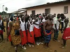 Les danseurs utilisent les sonnailles fabriquées avec des feuilles de rônier, des coquillages, des graines, des pièces de monnaie, des anneaux, des fragments de cornes ou d’os suspendus par des cordes ou des ficelles[6].