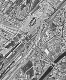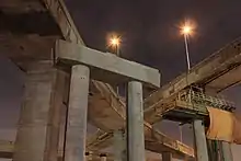 12 bretelles composaient l’échangeur et totalisaient près de 7,7 km. Elles étaient construites sur piliers et se situaient à une hauteur moyenne de 18 mètres (60 pieds) avec un sommet où les véhicules circulaient à 30,48 m (100 pieds) au-dessus du sol.