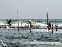 On trouve des échassiers également en Asie, ou en Amérique du Sud. Sur ce dernier continent, il semble que ce soit moins une tradition qu’une importation de la technique par des personnes ayant travaillé dans des cirques aux États-Unis. À part en Bolivie, l’utilisation semble relativement récente dans cette partie du monde.