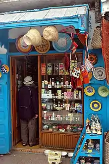 Les échoppes médiévales, appelées selon leur spécialité et leur région boctique, boticle, chambre, ouvroir, ouvreur, sont des prolongations d'ateliers servant à la vente[1]. Boutique et étages sont construits ensemble pour un même artisan ou commerçant, l'échoppe associant les fonctions d'habitation et d'exercice de son métier. Ces échoppes s'ouvrent sur la rue par des ouvertures rectangulaires avec poutres disposées en linteaux ou des arcades en pierres plus ou moins travaillées. Elles sont limitées par un muret bas en pierre ou en bois formant étal[2], interrompu pour dégager l'entrée. Leur comptoir à l'extérieur expose les produits à vendre sur des tréteaux ou parfois sur le vantail inférieur des contrevents qui se rabat[3], le vantail supérieur se relevant à la manière d'un châssis à tabatière (l'un permet d'agrandir l'étal extérieur, l'autre sert d'auvent). Les artisans et les boutiquiers travaillent sous les yeux des passants, derrière la baie de leur ouvroir, ce qui permet de contrôler la réalisation. La concurrence est d'autant plus forte que ces artisans se groupent souvent dans un quartier dédié, certains métiers (comme les tanneurs et les bouchers) étant relégués dans des quartiers périphériques à cause de leurs nuisances[4].