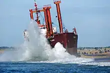 Dans une mer forte, l'échouement peut entraîner la destruction progressive du navire qui va talonner (heurter) violemment le fond à chaque vague. Si l'échouement se produit sur un écueil par ailleurs entouré d'eaux profondes, le navire risque de couler après avoir été brisé par la mer.