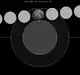 ![]() Schéma de l'évolution de l'éclipse, tandis que la Lune passe de droite (Ouest) à gauche (Est) dans l'ombre de la Terre. | |