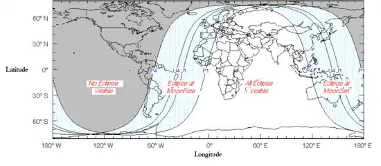 L'éclipse fut visible depuis l'Europe, l'Afrique, l'Asie et l'Australie.