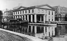 À l’occasion, si le débit du cours d’eau est suffisant, une écluse sans barrage permet de racheter un courant trop fort : à Buffalo, sur la rivière Niagara, celle de Black Rock (en)[14] contourne les vigoureux rapides du pont de la Paix à l’International plus au nord. Sur les trois-quarts du parcours de quelque deux milles nautiques, l’île est prolongée vers l’amont par des épis pour assurer un apport d’eau suffisant jusqu’à l’écluse. Le « rachat » de la chute moyenne de 5,2 pieds (±1,5 m) permet aux « petits » bâtiments d’accéder à Tonawanda à quelque 12 km de là à la rivière canalisée du même nom, puis, après moins de 40 km d’un plan d’eau à « l’étale », aux deux premières écluses du Canal Érié à Lockport.