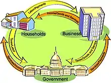 Ici, l'état n'est pas l'agent économique principal des économies capitalistes. Le courant du circuit met en lumière trois pôles principaux, qui se hiérarchisent via leurs flux et leurs fonctions. La construction de ce circuit se base, pour chaque pôle, sur l'égalité comptable emplois=ressources.