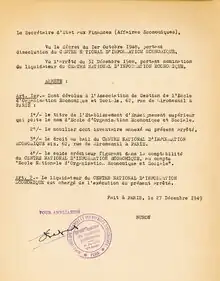 Ce comité est chargé d'organiser la profession par la profession et décide de créer une école proposant un enseignement complémentaire à ceux qui se destinent au syndicat patronal[7]puis, sous le régime de Vichy, aux dirigeants des comités d'organisation[8]et de l'Office central de répartition des produits industriels. En 1941, sous l'impulsion de Georges Lutfalla, cette école devient l'École Supérieure d'Organisation Professionnelle (ESOP) puis, en 1944, l'Ecole nationale d'organisation professionnelle.