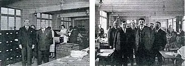 Une infrastructure à la mesure de l’importance de l’organisation est nécessaire pour faire face aux 300 000 kilos de papiers, aux 60 000 documents différents dont chacun est tiré à des centaines ou milliers d’exemplaires et aux plusieurs milliers de courriers expédiés ou reçus par jour. M. Léon Bréard, ministre de l’Instruction publique inaugure le les 5 000 m2 de bureaux du siège social, au 59 bd Exelmans, Paris XVIe, nécessaires au stockage et aux trois cent cinquante employés et chefs de services administratifs. Pour faire face à l’ampleur du trafic postal, l’administration des PTT a dû, fait exceptionnel, concéder à l’École universelle un bureau de poste spécial, Paris XVI bis, installé dans les locaux même de l’école.
