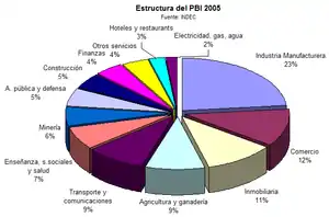 En 2006, l'expansion économique a été de 8,5 %, ce qui constituait la quatrième année de croissance soutenue[35]. Selon les données officielles de la Banque centrale de la République argentine et l'Institut national de la statistique INDEC, en 2006 le produit intérieur brut en valeur nominale fut de 654.413 millions de pesos en prix courants[36], équivalent à 212.857 millions de dollars américains USD[37], avec un PIB par habitant de 6 548 dollars. Si l'on considère le PIB en parité de pouvoir d'achat (PPA), celui-ci atteint en 2006 quelque 621 070 millions de dollars[38].