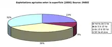 La part de l'agriculture dans l'économie se situe bien en dessous de la plupart des régions françaises. L'agriculture ne représentait en 2003 que 2,3 % du PIB corse, contre 3,5 % pour les régions de France métropolitaine moins l'Île-de-France. La part de l'agriculture dans le PIB est en diminution rapide : -12,5 % en 2003[2]. Seul 36 % de la surface de l'île est exploité par les agriculteurs, contre 54 % en moyenne nationale.