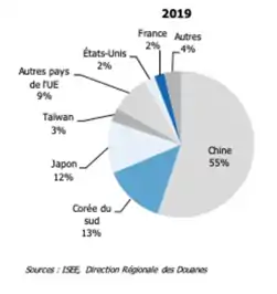 La Corée du Sud est le deuxième pays destinataire (13.5% du total) et le Japon le troisième partenaires commerciale (11.5% du total)[6],[8].