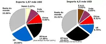 | Biens importés | Biens de consommation, machines-outils, équipements de transport, biens industriels intermédiaires, pétrole |