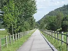 La Voie verte des Hautes-Vosges, ancienne ligne ferroviaire reconvertie en piste cyclable, ici une section entre Bussang et Rupt-sur-Moselle.