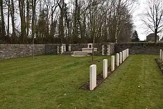 Le cimetière militaire a été commencé en pour inhumer les victimes des combats et utilisé jusqu'en . Un certain nombre d'inhumations ont ensuite été faites par les Allemands et après l'armistice, d'autres tombes, presque toutes les tombes du 2e et 6e North Staffords, ont été créées.