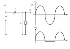 La partie positive seule du signal passe, la partie négative provoque le blocage de la diode. Ce montage est souvent préférable, car l'amplitude du signal n'est pratiquement pas diminuée et la raideur des flancs peut être plus poussée. On l'utilise aussi à la suite de l'écrêteur pour supprimer la tension négative résiduelle.