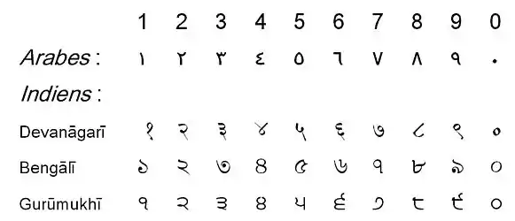 L'écriture occidentale des « chiffres arabes » résulte d'une évolution graphique d'anciens chiffres arabes. L'écriture arabe contemporaine utilise, par contre, des chiffres empruntés aux écritures indiennes.