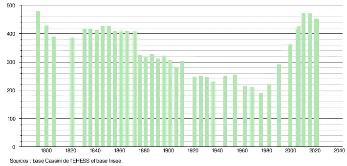 (Sources : Ldh/EHESS/Cassini jusqu'en 1999[23] puis Insee à partir de 2006[24].)