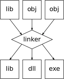 - dynamiques : le fichier objet est intégré dans le fichier exécutable alors que ce dernier ne contient que les liens vers les routines utilisées des bibliothèques dynamiques (les routines provenant des bibliothèques dynamiques ne sont pas intégrées dans le fichier exécutable).