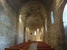 C'est une église de style roman, construite en fraidronite sombre, une roche filonienne à grain fin, assez fréquente dans les Cévennes et proche de la kersantite. Orientée ouest/est, elle mesure 23 m par 6 m. On y accède, sur le flanc sud, par un portail, abrité par un porche saillant comportant des chapiteaux sculptés, bien qu'il y ait aussi une porte dans le mur ouest. Construit selon le plan basilical, le bâtiment est formée d'une nef unique à trois travées voûtées en berceau plein cintre, d'une seule travée de chœur et d'une abside semi-circulaire voûtée en cul-de-four percée d'une fenêtre haute. La nef est creusée par des arcs en plein cintre, deux aveugles au nord, deux percés de deux fenêtre hautes au sud. À l'ouest, un petit clocher, datant de la transformation en temple protestant, surmonte le pignon mouluré de la façade. Celle-ci présente un grand arc engagé. Une porte et une fenêtre haute, de style roman, complètent cette élévation de la façade.