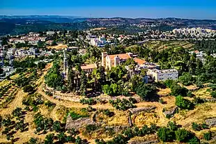 Le lieu où elle a été bâtie serait celui où l'Arche d'alliance a reposé pendant vingt ans, jusqu'à ce que le roi David prenne Jérusalem. Elle serait donc située sur le lieu biblique de Kiryat Yéarim.